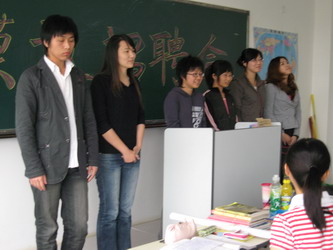 2008年5月19日至30日,英语学院2006级全体同学在辅导员李佳老师的指导下召开了明确就业目标,创立职业规划大会。各班同学分别以“模拟招聘会”、“自我推销”等为主题的班会,达到了预期的效果。