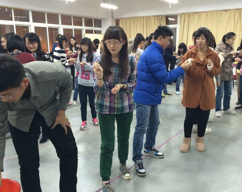 活动一开始,全体成员即以“抽签”方式被分为十组,之后以组为单位进入游戏环节,游戏环节共分为3组游戏,分别为“滚雪球,记名字”、“夹乒乓球”和“地雷阵”。这些游戏带动了学生的积极性,将现场气氛推向高潮,充分体现了“增强学生会内部团结,提高团队凝聚力”的宗旨。不时穿插其间的“小惩罚”更让学生们在欢声笑语的温馨气氛中增进了彼此的感情。在活动的最后,全体分团委学生会成员以一张欢乐的“全家福”结束了今晚的活动。