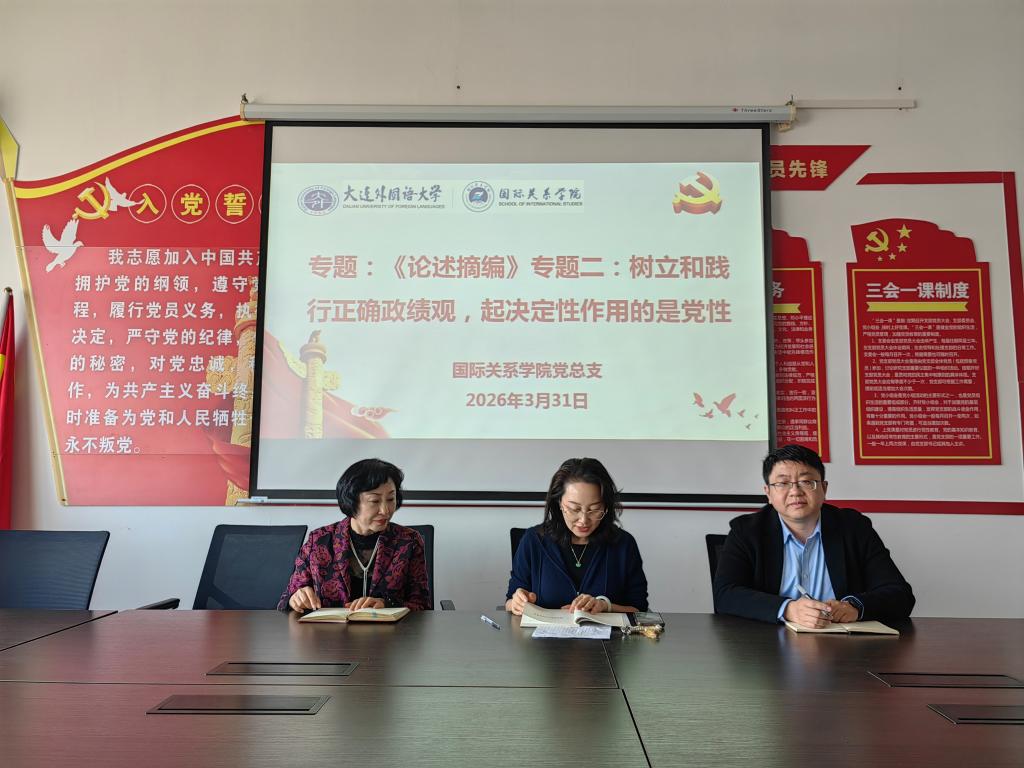 331日,国际关系学院(东北亚研究院)处级领导干部树立和践行正确政绩观学习教育读书班于11B537党员活动室开展第三次集中学习,专题学习《习近平关于树立和践行正确政绩观论述摘编》中“树立和践行正确政绩观,起决定性作用的是党性”相关内容。学院院长薛晓芃领学,党总支书记郝利群、东北亚研究院副院长吕平参加学习。